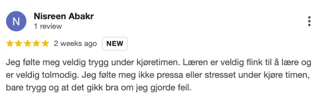 Ditt første steg til lappen. Dobbeltime på hele 90 minutter med erfaren kjørelærer som hjelper deg med å senke skuldrene.