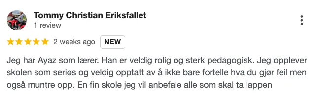 Vi er stolte av å kunne vise til en høy beståttprosent blant våre elever. Med effektive læringsmetoder og en solid opplæringsplan, gir vi deg det beste utgangspunktet for å klare både teori- og oppkjøringsprøven.